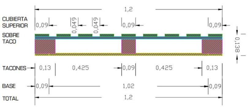 | Sobre taco | 3 | 16 x 90 x 1200 mm | ±2 mm |
